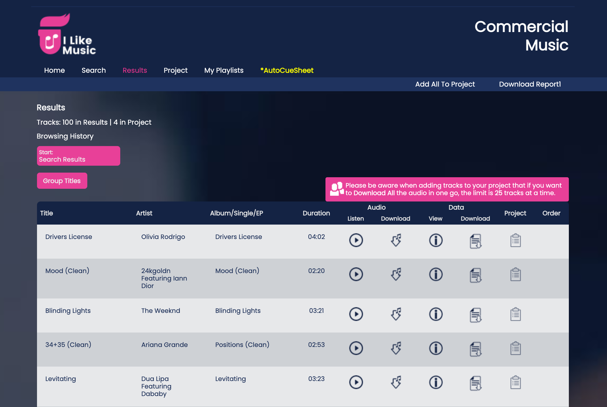 Browse ILM playlists for genres, eras, holidays, new releases and charts data like Spotify or Billboard Top 100. ILM also provides millions of production music tracks and stings.